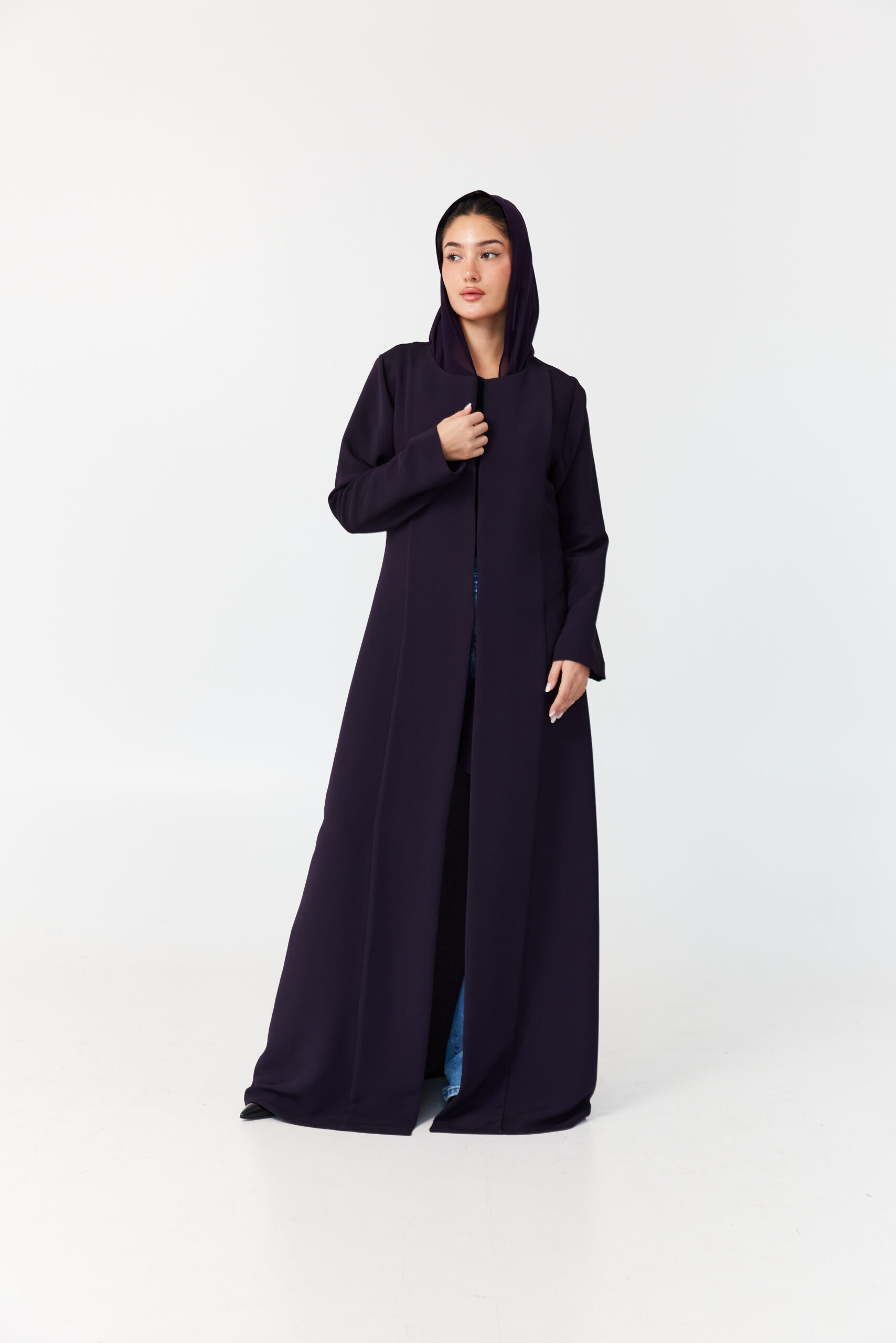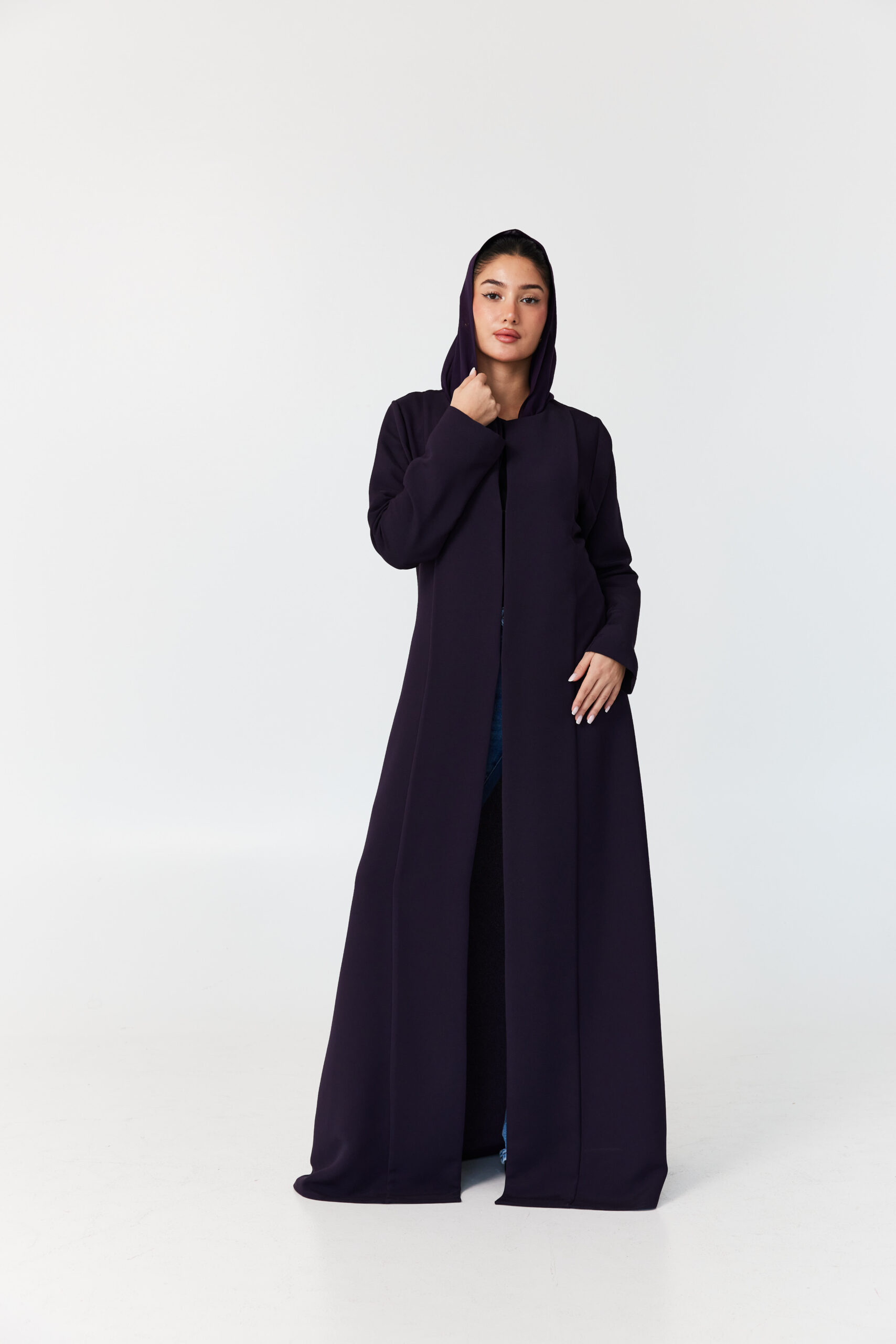 A practical dark purple abaya with a flowing design and comfortable fabric, perfect for effortless everyday elegance.